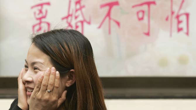 上周一,上海市徐汇区民政局离婚登记处挤满了婚姻美满的夫妇。此前一周有消息称,从今年9月开始,上海市政府将实行住房贷款首付比例为70%的新政策,但单身购房者不受此限制。