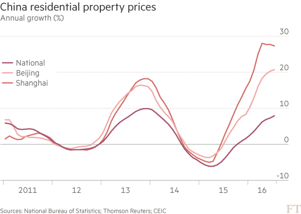 2016年初新出现的放贷潮是房价上涨的关键推手。2016年上半年,住房抵押贷款占到中国大型商业银行所有新增贷款的一半以上,6月抵押贷款总额创出新的纪录。