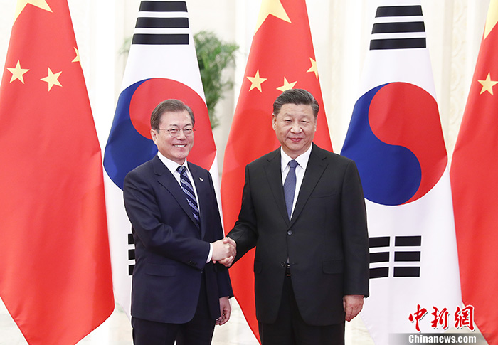 中新社北京12月23日电(记者郭金超)中国国家主席习近平23日在人民大会堂会见韩国总统文在寅。12月23日,中国国家主席习近平在北京人民大会堂会见韩国总统文在寅。