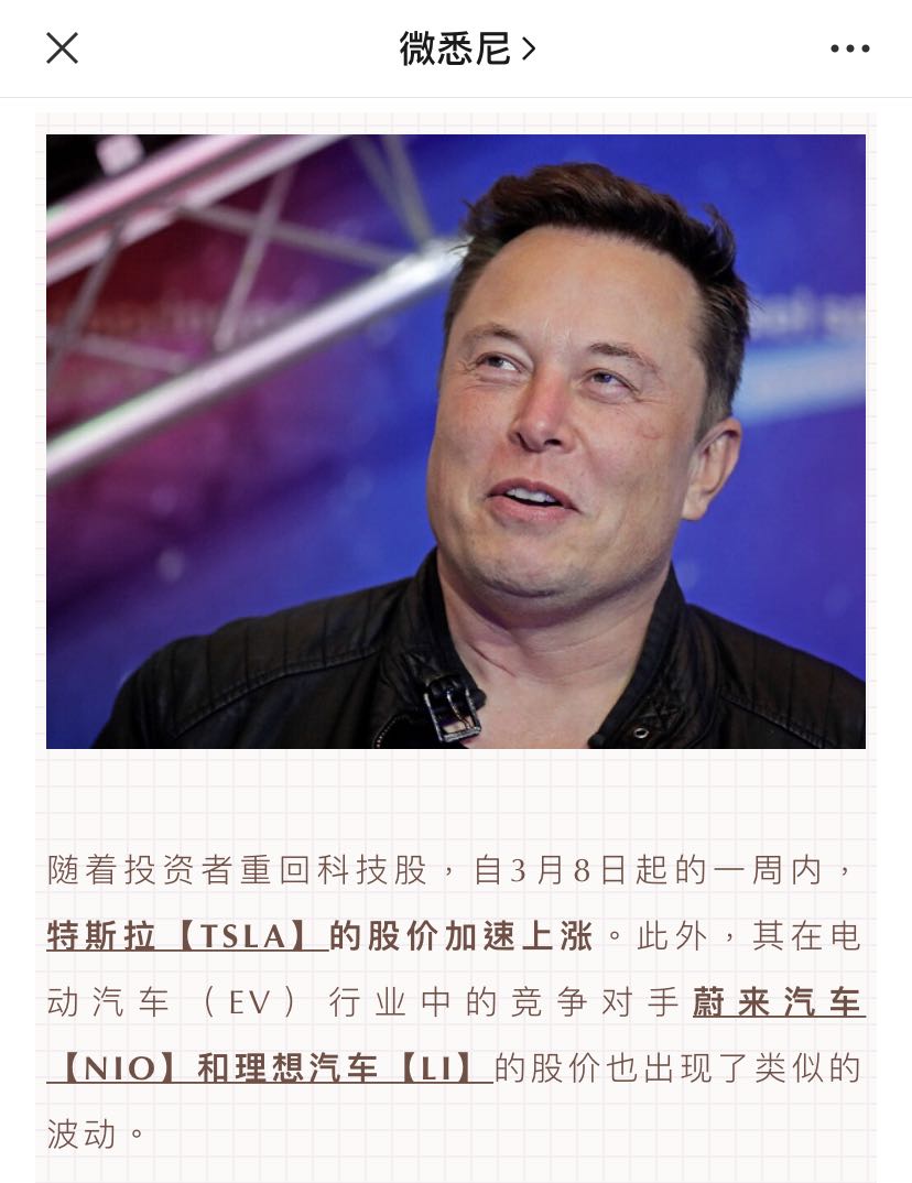 大众成为特斯拉最新的竞争对手。微悉尼微信公众号报道,随着投资者重回科技股,自3月8日起的一周内,特斯拉TSLA的股价加速上涨。此外,其在电动汽车(EV)行业中的竞争