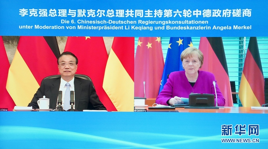 新华社北京4月28日电国务院总理李克强4月28日下午在人民大会堂以视频形式与德国总理默克尔共同主持第六轮中德政府磋商。两国总理听取了双方外交、经贸、司法、