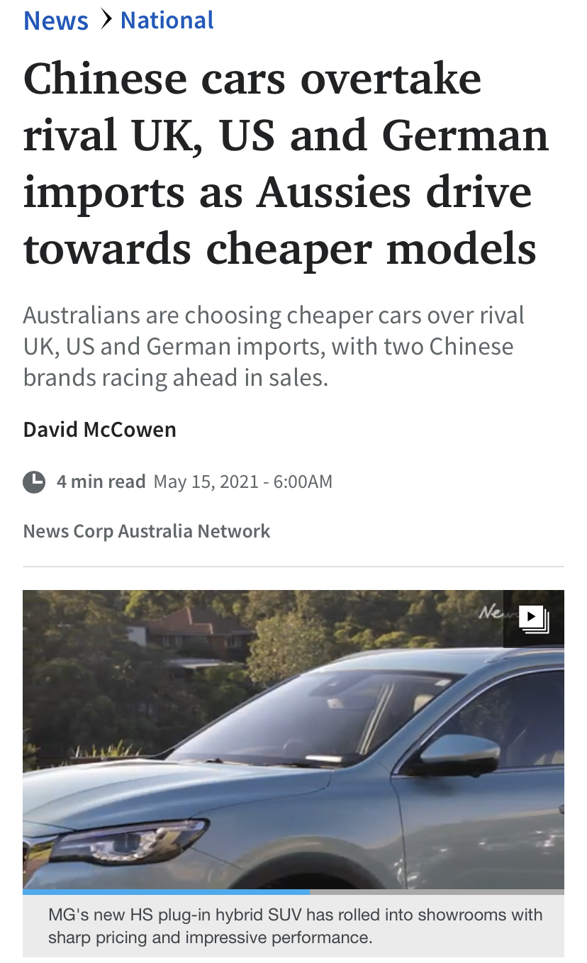 随着澳人选择更便宜的车型,中国进口到澳洲的汽车数量超过了竞争对手英国、美国和德国。汽车行业发布的新数据显示,随着澳人选择更便宜的车型,中国进口到澳洲的汽车