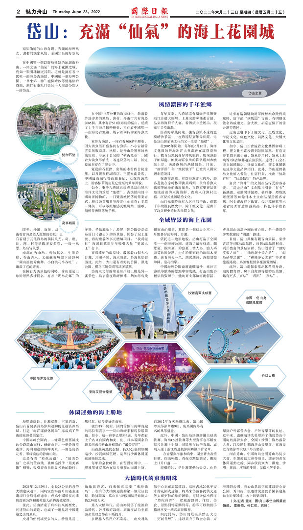 宛如仙境的山海奇观、秀丽的海岬风光、浓郁的渔家风情、全国知名的好空气……在中国第一个以群岛建制的地级市舟山,一座充满“仙气”的海上花园之城,宛如一颗明珠