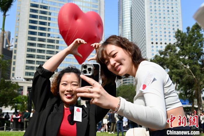 中新社香港2月14日电(记者刘大炜)由英国设计师安雅·希德玛芝(AnyaHindmarch)设计的巨大红色心形设计装置14日在香港中环亮相。这是该设计首次来到伦敦之外的地方展
