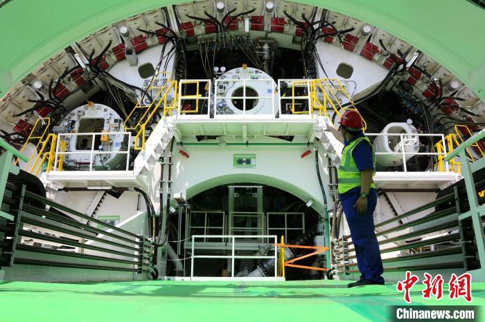 中新社济南5月19日电(记者沙见龙)开挖直径17.5米的“山河号”盾构机19日在山东济南顺利下线,将应用于济南黄岗路穿黄隧道工程,是目前世界在建最大直径泥水盾构机。