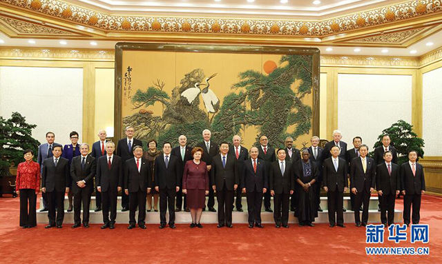 11月30日,国家主席习近平在北京人民大会堂会见来华出席“2017从都国际论坛”的世界领袖联盟成员。这是会见前,习近平同外方嘉宾集体合影。新华社记者姚大伟摄新华