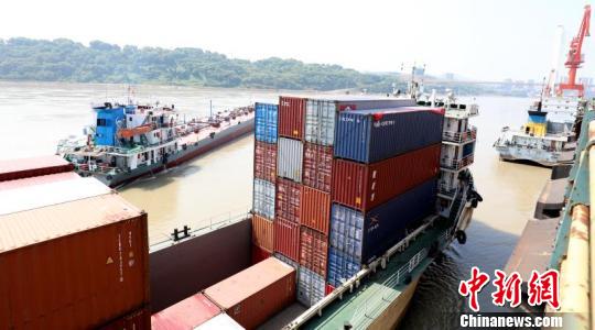 “民泰号”班轮驶出泸州港。 匡科 摄中新网泸州8月30日电(邹立杨熊腾)30日,随着“民泰号”班轮缓缓驶出泸州港,标志着“启运港退税+无水港”货物实现发运。此次