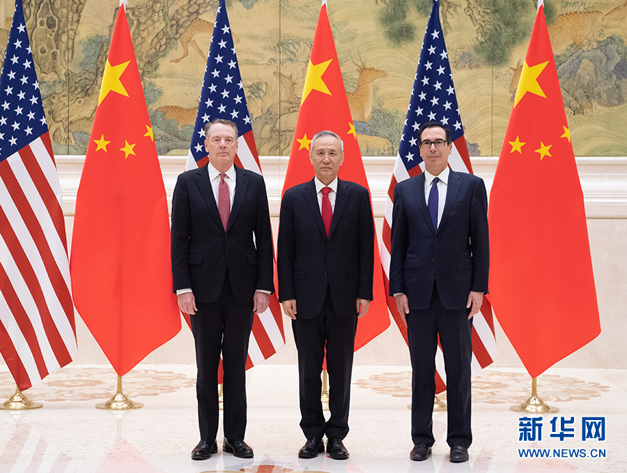 2月14日上午,中共中央政治局委员、国务院副总理、中美全面经济对话中方牵头人刘鹤与美国贸易代表莱特希泽、财政部长姆努钦共同主持中美经贸高级别磋商开幕式。本