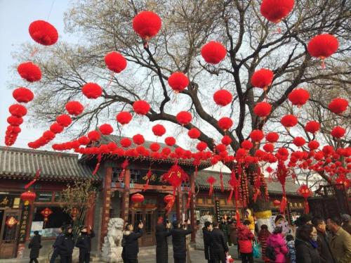 过年好! 今天是大年初一 人们在享受愉快的假期 北京 红灯笼、平安结 红红火火