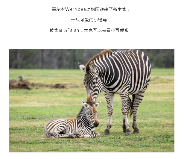 墨尔本吃饭吧报道,墨尔本Werribee动物园迎来了新生命,一只可爱的小斑马,被命名为Falah,大家可以去看小可爱啦!它的母亲富拉哈(Furaha)曾经患有恶性肿瘤,经过大量的