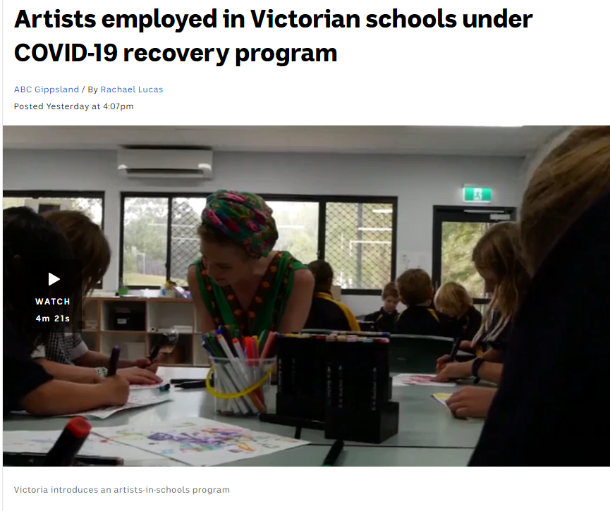 澳广网6日报道,艺术家可通过维州地区艺术机构(RAV)进行申请。之后,RAV会帮助艺术家联系那些没有专门的艺术老师或艺术项目的学校,并为他们提供为期6个月的有偿工作。