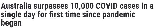 据澳洲七号台新闻昨日报道,自新冠疫情爆发至今,全澳单日确诊总数首次突破一万大关。