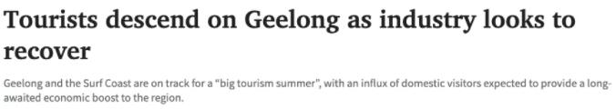 据季隆广告报(GeelongAdvertiser)报道,维州Geelong和Surf Coast即将迎来一个“旅游盛夏”,国内游客的涌入有望为该地区带来期待已久的经济增长。
