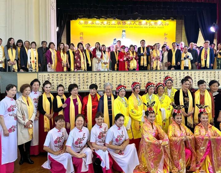 香气袅袅,温馨四溢。11点49分,两位大典主持人,澳洲著名华人主持、西悉尼大学资深中文教授赵立江,原上海东方卫视著名节目主持人李娜共同宣布:癸卯年澳大利亚华侨华人恭拜黄帝大典典礼告成。 今年的澳大利亚拜祖热情空前高涨,大典规模空前扩大。本届大典由澳大利亚非物质文化遗产发展研究中心、澳大利亚爱尔思文化交流协会、澳大利亚国际文化产业协会、澳洲潮州同乡会等联合主办,得到众多在澳华社及各界的大力支持。通过网络直播,场内场外两万多华侨华人共同参与这一传统的文化盛典。 九项仪程之后,澳大利亚黄河合唱团、澳大利亚东方歌舞团、全球华人艺术协会澳洲艺术团联袂为大家奉献了精彩的文艺演出。同时,组委会还征集了澳洲华人书画作品,在拜祖同时进行展出交流,国际华语全媒体、澳洲同城也专门做了网络直播。