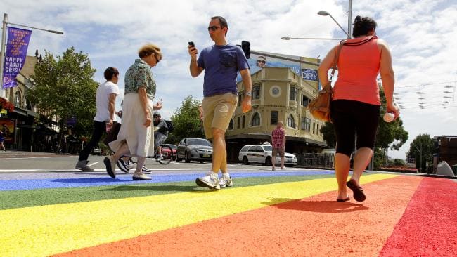 悉尼泰勒广场(TaylorSquare)的“彩虹人行道”。(《每日电讯报》图片)据《每日电讯报》报道,5年前的一个夜晚,悉尼泰勒广场(TaylorSquare)的“彩虹人行道”被新州政
