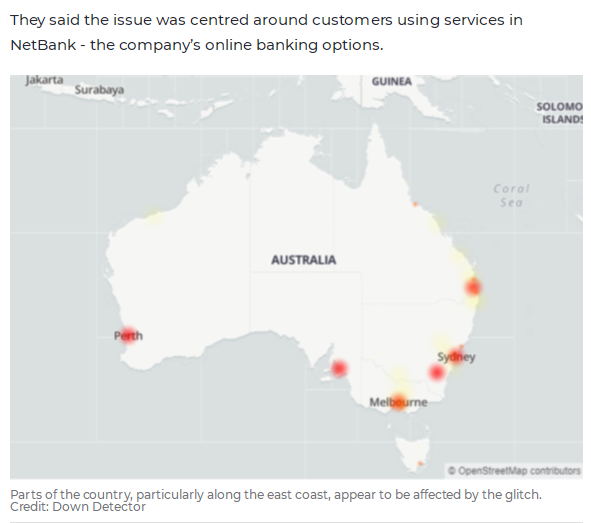 (图/网络截图)4月1日下午4时左右,联邦银行(Commonwealthbank)出现了大规模的技术故障,致使许多用户受到了不同程度的影响。第七新闻1日报道,悉尼、墨尔本、布里斯