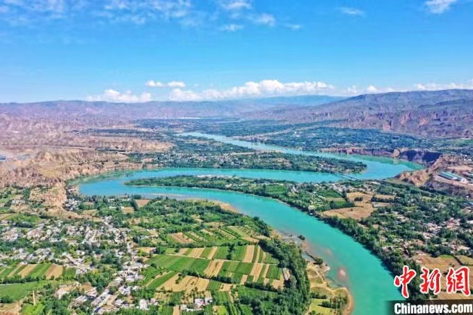 航拍流经青海省黄南藏族自治州尖扎县境内的黄河夏日美景。马铭言摄 到了青海我才发现,原来黄河不一定是黄色。”土库曼斯坦留学生唐一泓笑
