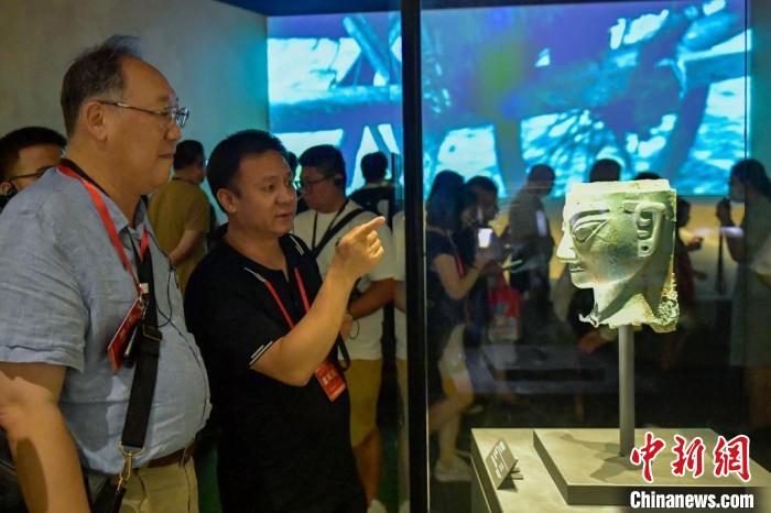 中新社德阳8月18日电(朱贺)“原来青铜神树如此高耸,树上的鸟儿也栩栩如生。”18日来到位于四川广汉的三星堆博物馆,台湾政治大学历史学系本科生黄柏谚在馆藏