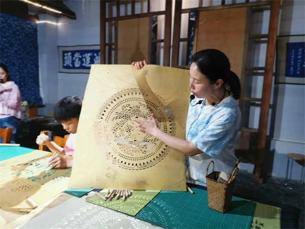 财视澳洲邵阳电7月17日,“聚侨兴湘·海外华文媒体邵阳行”活动一行人前往邵阳市国家级非物质文化遗产——蓝印花布保护性生产基地进行了参观采访