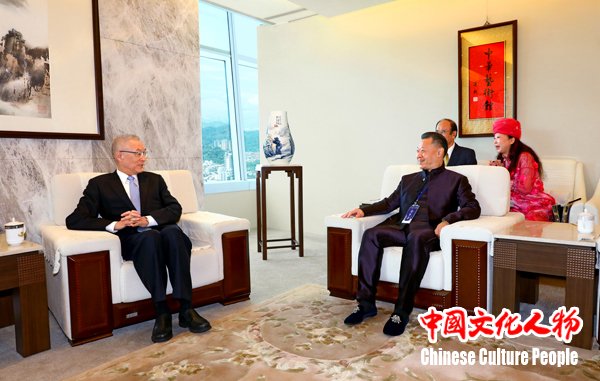 吴敦义亲切会见王寅,并对王寅弘扬中华优秀传统文化、与台湾民众及专家学者分享科学解读《黄帝内经》取得的成就给予高度赞扬