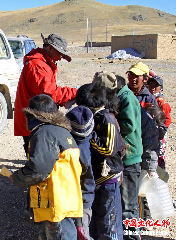 韩玉臣为藏区儿童发送学习用品