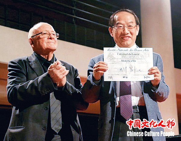 第152届法国国家艺术沙龙展主席为韩玉臣颁发油画金奖证书