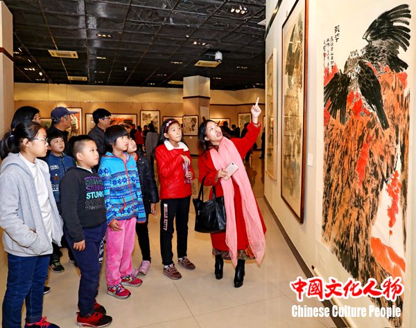 “宏图展翅飞 辉煌新时代——著名画家王书平作品展”吸引了大批学生及家长老师前来参观,孩子们从展览作品《狼牙山五壮士》中感受英雄人物的伟大,传递热爱祖国、热爱人民的主旋律