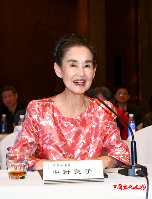 日本著名演员中野良子致辞,用中文向现场的中国嘉宾问好,并祝贺“普和至美·艺结善缘——2017中日文化界高峰交流会”成功举办