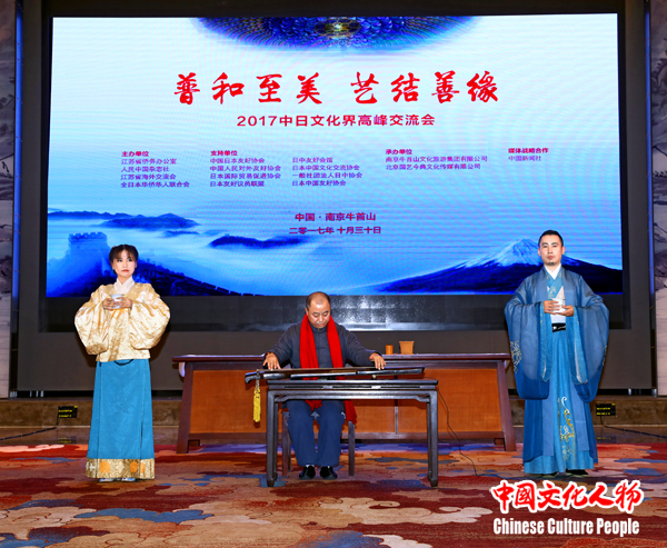 艺术家在“2017中日文化界高峰交流会”现场表演茶道和古琴