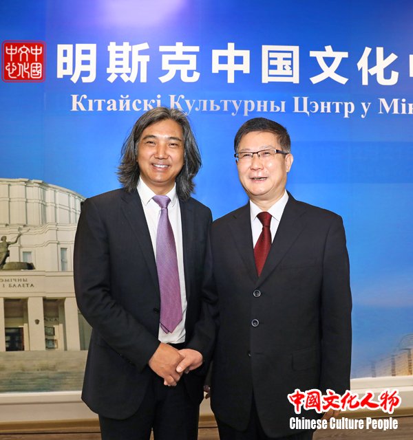 中国驻白俄罗斯大使崔启明与中国美术馆馆长吴为山亲切交流,就吴为山对明斯克中国文化中心的支持表示感谢