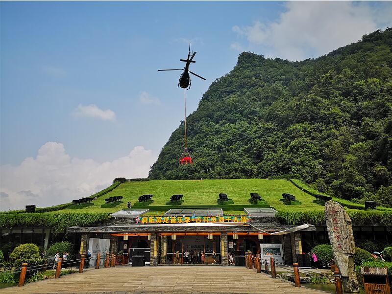 直升机吊装钢琴前往御笔台,飞越黄龙洞哈里路亚剧场绿色屋顶主演奏区