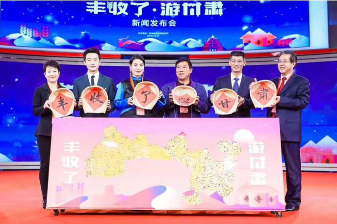 新闻发布会上,甘肃省委宣传部副部长、文化和旅游厅党组书记、厅长、文化博览局局长陈卫中发布了“丰收了·游甘肃”活动内容和优惠措施,并为甘肃籍著名演员黄轩颁发甘肃旅游形象大使证书。中国旅游报社社长徐行,甘肃省文化和旅游厅党组书记、厅长陈卫中,甘肃旅游形象大使黄轩,腾讯公司政务业务部总经理葛燄,北京市平谷区大华山镇陈庄子村村主任张秀启,甘南藏族自治州迭部县泰吾赛雍藏寨村民代表扎西措,共同将五谷粮食注入如意甘肃地形图案,启动了“丰收了·游甘肃”活动。新闻发布会由甘肃省文化和旅游厅副厅长火玉龙主持。
