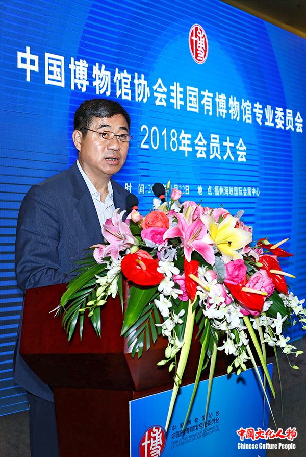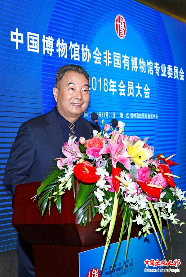 中国文化人物(主编 王保胜)为贯彻落实中共中央办公厅、国务院办公厅《关于加强文物保护利用改革的若干意见》,激发非国有博物馆创新发展活力,促进文物市场活跃有序健康发展,根据《中国博物馆协会非国有博物馆专业委员会管理办法》,11月22日,中国博物馆协会非国有博物馆专业委员会(简称“专委会”)2018年会员大会在福建福州成功举办。国家文物局副局长关强,国家文物局博物馆与社会文物司司长罗静,中国博物馆协会秘书长安来顺,中国博物馆协会非国有博物馆专业委员会秘书长王勇,以及国家文物局博物馆处处长何晓雷、陕西省历史博物馆馆长强跃、中国文物报社社长李耀申、福建省文物局副局长谢平、陕西省博物馆协会理事长侯宁彬、福建省文物局博物馆处处长陈方昌、四川省文物局博物馆处处长李蓓、河北省文物局博物馆处处长李宝才、江西省文物局博物馆处处长刘昌兵、江苏省文物局博物馆处处长车宁、河南省文物局博物馆处处长康国义、广东省文物局博物馆处副处长刘丽团、郑州市文物局副局长任晓红、郑州市文物局博物馆处处长李喜明、淄博市文物局副局长于崇远、西安市文物局博物馆处处长郭治华、四川省文物局博物馆处许小群、湖北省文物局博物馆处孙立、苏州市吴江区文广新局凌芸、山东博物馆副馆长卢朝辉、西安博物院副院长王梅、西安半坡博物馆馆长张礼智、郑州市博物馆馆长张霆等全国各地文物部门领导和24个省区市的非国有博物馆馆长、代表、文化学者近600人出席会议。中国博物馆协会非国有博物馆专业委员会秘书长王勇向大会作了专委会2018年度工作报告。国家文物局副局长关强、中国博物馆协会秘书长安来顺分别致辞。中国博物馆协会非国有博物馆专业委员会副主任、北京观复博物馆副馆长李瑄主持大会。