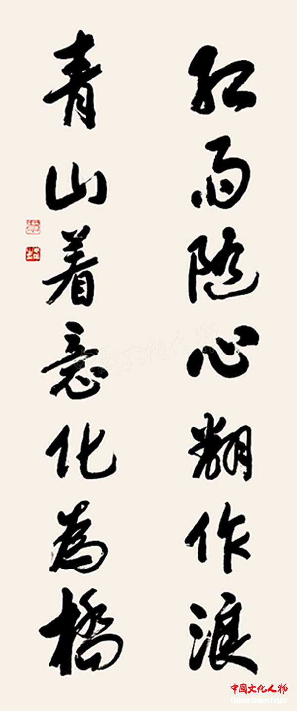 《红雨随心翻作浪,青山著意化为桥》(毛泽东诗句) 覃志刚书法作品  366cm×72cm
