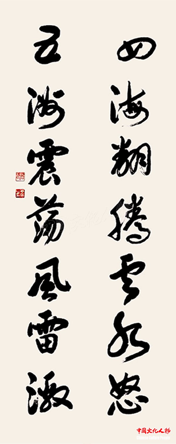 《四海翻腾云水怒,五洲震荡风雷激》(毛泽东诗句) 覃志刚书法作品  366cm×72cm
