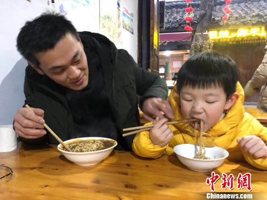 台湾父子品尝阆中牛肉凉面。 张浪 摄