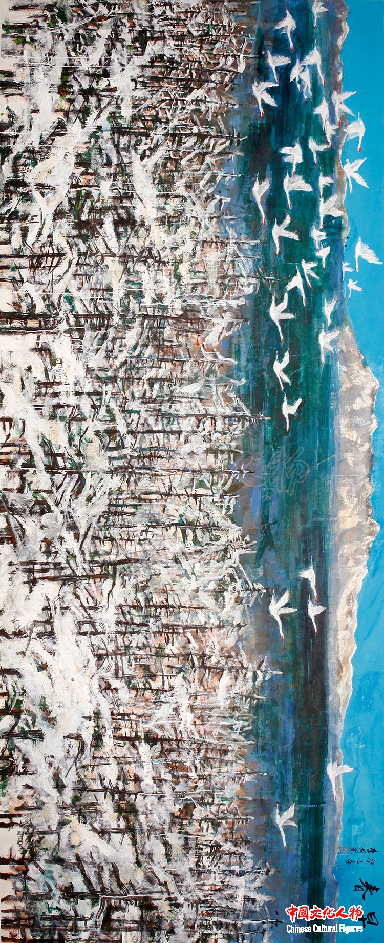 湿地—腾云似涌烟 232×122cm 李前宽作品