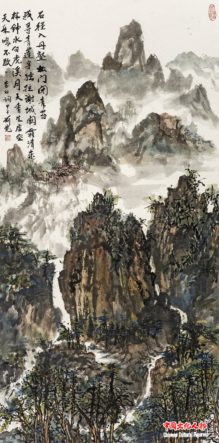 天台众峰外 138×69cm 李前宽作品