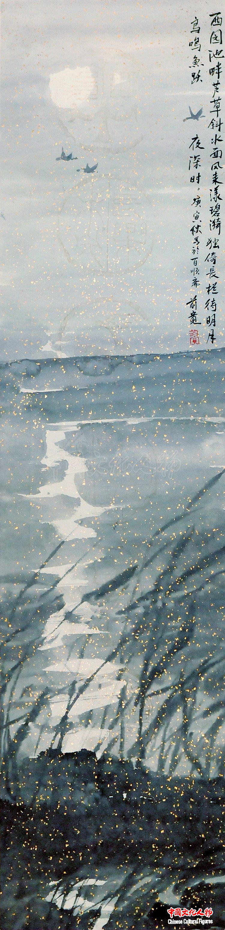 西园池畔芦草斜 132×32cm 李前宽作品