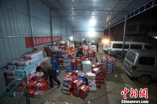 在盐源县卫城邮政支局,工作人员晚上仍在忙碌地为苹果装箱。 王磊 摄