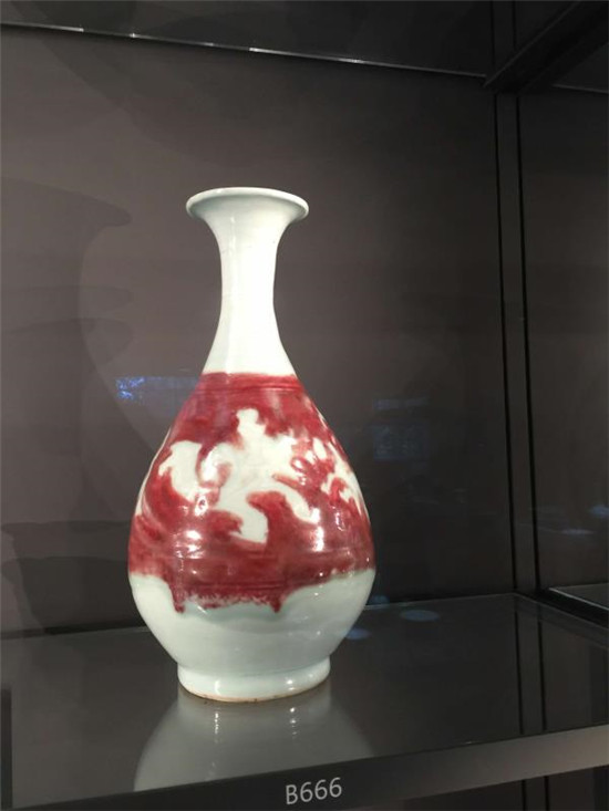 元代釉里红玉壶春瓶,大英博物馆藏。