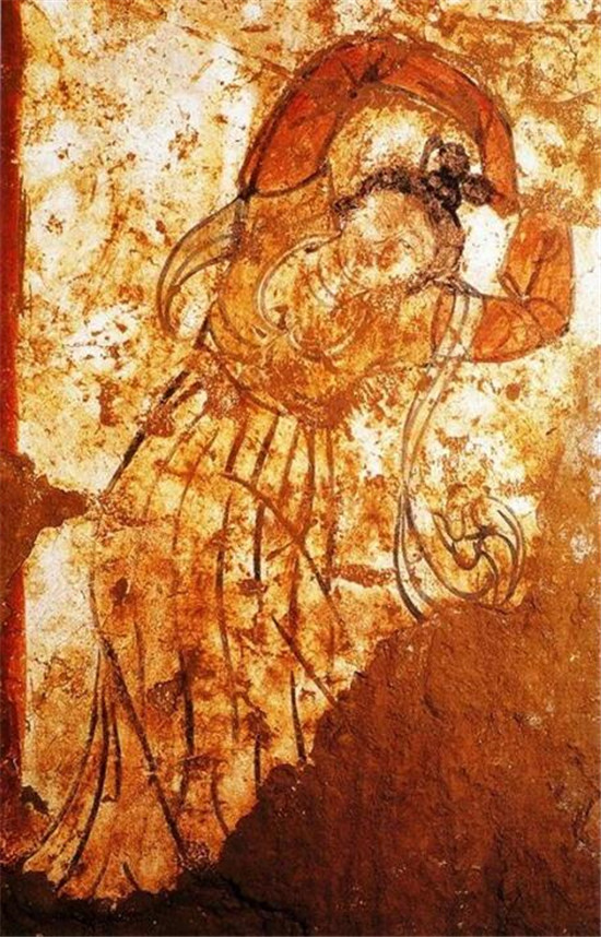 初印象:她身材颀长,削肩蜂腰,柳眉凤目,高鼻朱唇,颈戴项链。身穿阔袖襦,外罩贡领翘肩半臂,下着曳地长裙,臂饰钏镯,双手抬举至胸前,食指伸出,神态虔诚、气韵生动……使她极具东方女性的神韵,这是一个集才华与美貌于一身的女子。