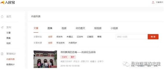 十月十日,拙文被关爱老兵的同道中人传至《印象贵州网》后,几乎产生了核裂变式的扩散。国内重量级的今日头条、网易当天转发。尤为令人感动的是:一向以庄重著称的《人民日报》新媒体平台人民号也在当天全文转载。此后几天又有十八家国内知名网站纷纷转发,台湾《海峡两岸》杂志也以十一页的篇幅全文刊登。