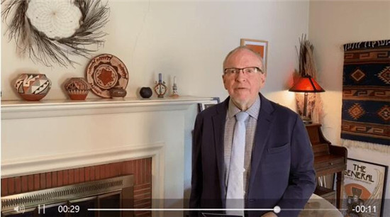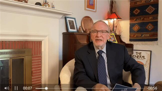 ▲比佛利艺术高级顾问兼执行董事、洛杉矶国际艺术节艺术指导、美国国际纪录片协会创会主席、奥斯卡和导演工会评委,曾七次导演奥斯卡晚会,执导并制作了80多部电影、电视作品的哈里森·恩格尔(Harrison Engle)向艺术节录制祝贺视频(如上截图)。