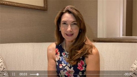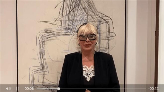 ▲比佛利艺术执行董事、有美国“室内设计界教母”之称的世界知名室内设计师珊达·卡斯塔(Sandra Costa)为黄建南录制视频(如上截图)说:“黄建南先生,我以组委会的身份邀请您到美国参加洛杉矶国际艺术节。我们非常想在洛杉矶为您的美丽作品举办个人画展。我也特别高兴刚才在采访连线中与您交流。非常欢迎您到美国光临指导!”