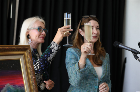 ▲著名国际双语主持人周正和加州大学洛杉矶分校知名艺术教授理查德·韦恩(Richard Wearn)