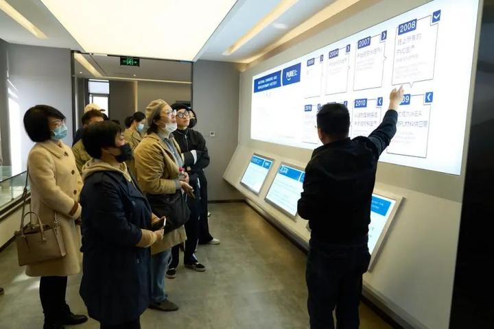 启动仪式后,浙江理工大学参会师生一行前往丽水市合成革行业代表企业,对生产车间、研发中心、产品展厅进行参观走访,并与企业针对合成革品类、制造工艺、设计研发、资源对接等问题进行深入互动交流。并与相关企业负责人共同围绕“元宇宙技术在生态合成革领域的应用趋势探讨”的话题进行了座谈交流。