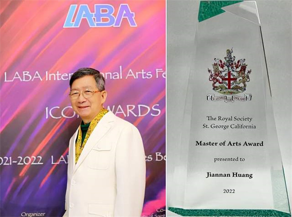 ▲黄建南在2021“LABA全球最具影响力艺术家”评选中位列第一,并获得“LABA国际艺术节公益标志奖”。