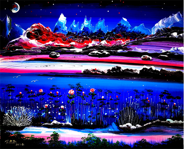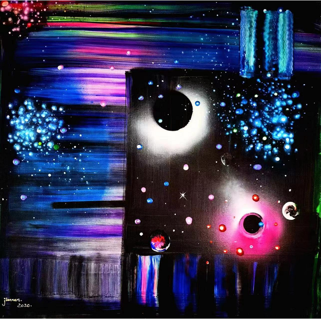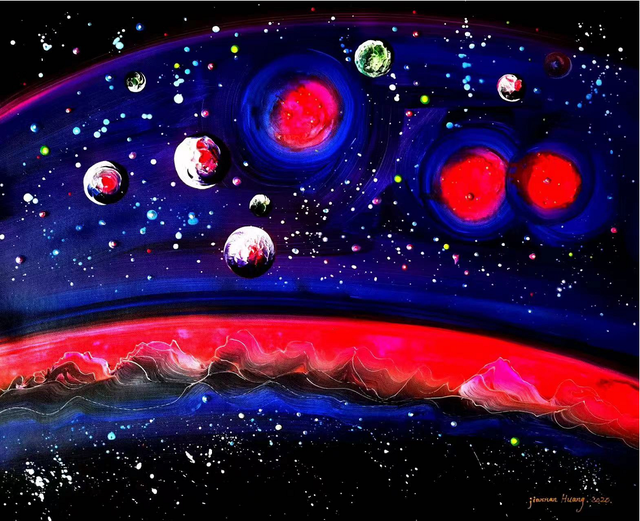 最令人惊讶的是黄建南独特的艺术视野,让他的创作领域进入了很少甚至无人涉足的宇宙星系,而这个空间完全由他的想象力所创作的。
