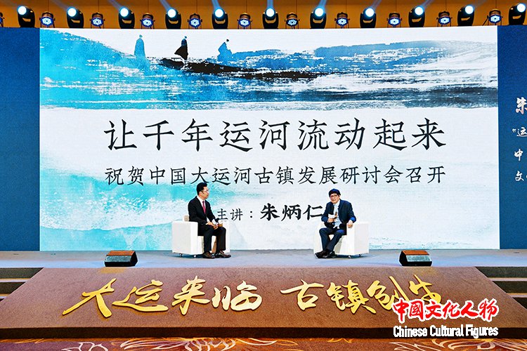 『大运来临,古镇创生』中国大运河古镇发展研讨会,“运河三老”之一朱炳仁大师发表“让千年运河流动起来”主题演讲,让运河流动,让文化融合,让经济复苏。